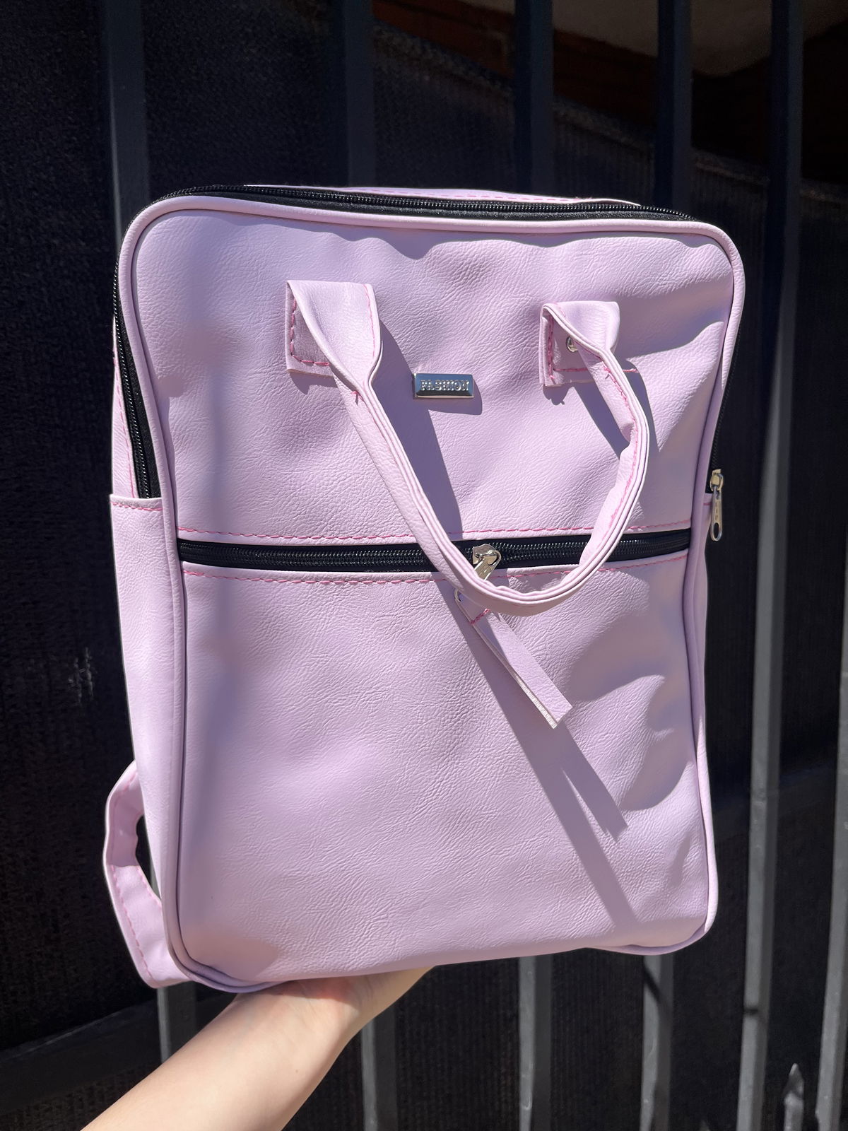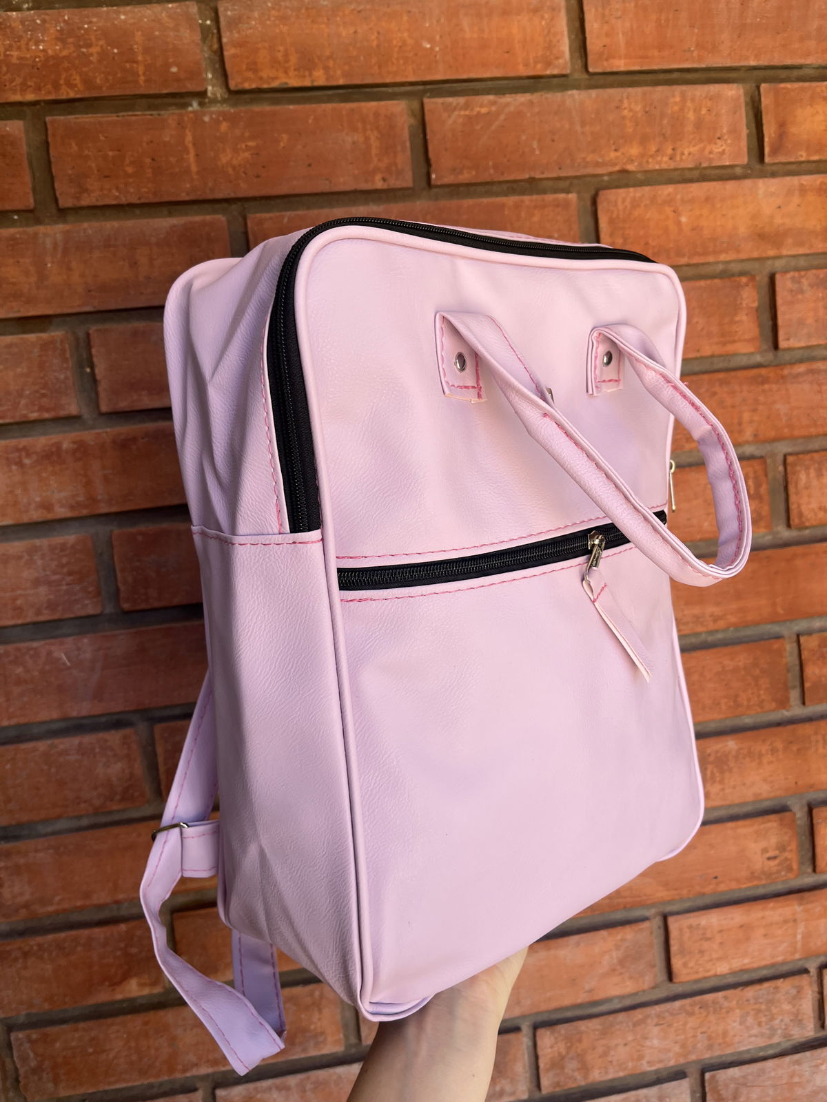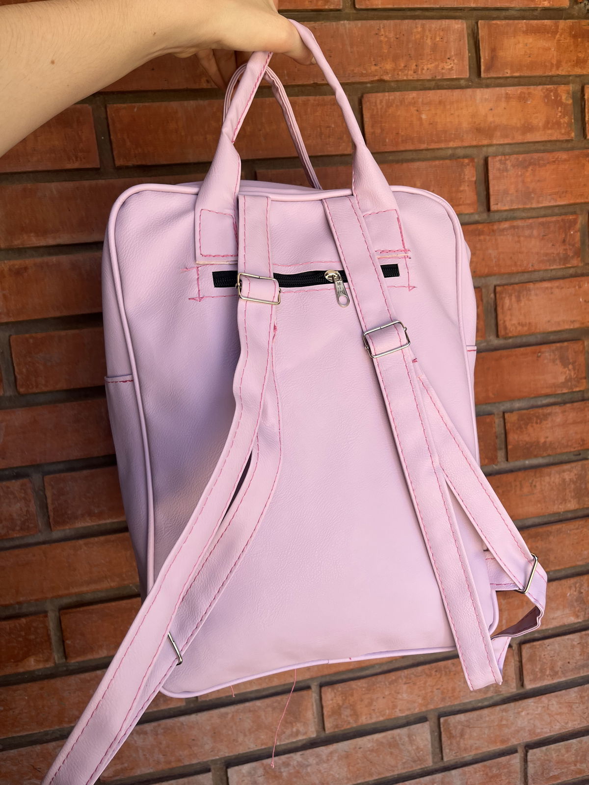 Mochila bolso de eco cuero color lila pastel
